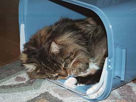 わぁい、きもちいい! すりすりしちゃお! と、そのまま眠りの中へ・・・・ え?違うの? 「それは ごみ箱なんだよ。」 |