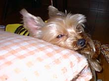 | でも、カメラを向けられると、どうしても 目が半分開いてしまう。 ああ、でも眠い。 お願い、カメラを向けないで・・。 |