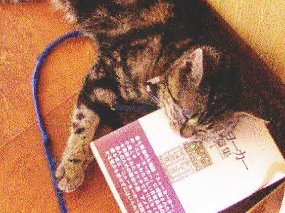 | キャットマリンコープのmacさんがお昼寝しています。 FLEX-J Webmasterが飼っているユニークで粋な性格の♀。 アメリカ原産のねこらしく、雑誌『ニューヨーカー』の短編 連作小説集をまくらにしているのは、決して作為的な演出 にはよらず、たまたま無造作にFLEX-J Webmasterがパソ コンデスクとして使用中のカリモクテーブルの上から零れた本。何ともmacらしいmacのお昼寝シーン… (大きくて動く豪華客船にFLEX-J Webmasterに案内させながら乗りたいにゃー……ZZZZZZZ) |