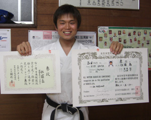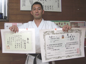 2010/0606/浦安市立総合体育館にて開催されました平成22年度浦安市民体育大会空手道競技に於いて一般男子有段組手の部で安田昇司選手が優勝、一般男子有段形の部で佐藤 亮選手が準優勝と大活躍でした。