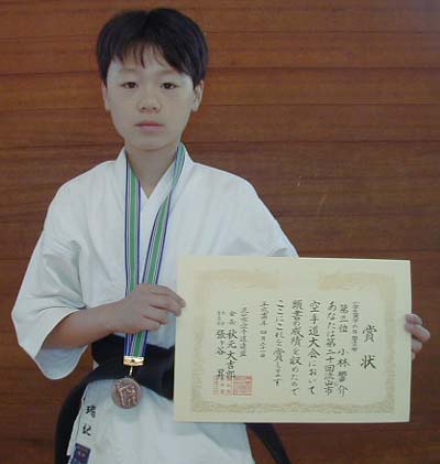 中学2・3年形の部で優勝、組手の部でも第3位の桑野恒太選手!!