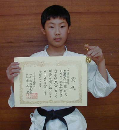 小学生高学年男子組手の部で敢闘賞の安生晴紀選手!!