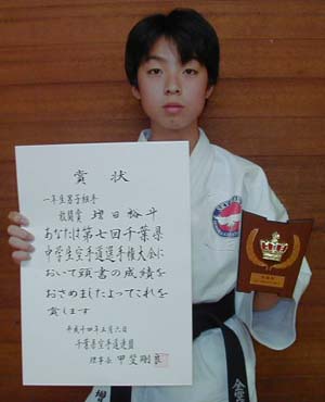 020506第7回千葉県中学生空手道選手権大会男子形で敢闘賞の中西秀爾選手!!