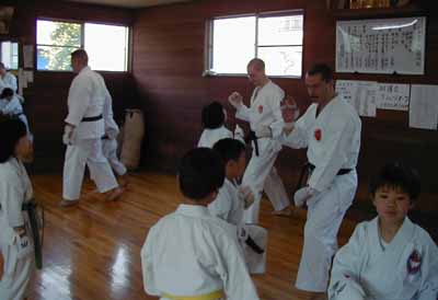 少年部の練習を指導するゲルギオス先生とジュゼッペ指導員
