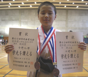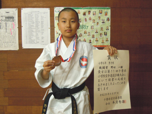 小学生高学年男子形の部第3位、組手の部敢闘賞の今野元輝選手!!