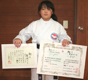 中学生女子組手の部で優勝、形の部は第3位の今野玲華選手!!
