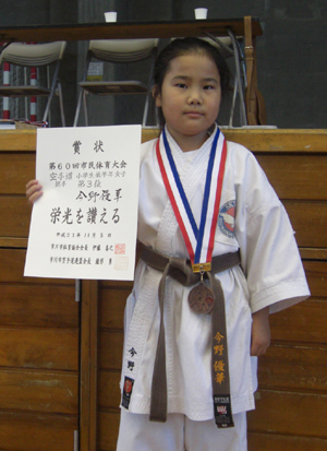 小学生3・4年女子有級形の部で敢闘賞の今野優華選手!!
