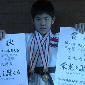 は小学校1-2年形で第3位、5-6年形で安藤さやかは敢闘賞。中学校女子形では橋本玲音が第3位。組手では岩本海介、茉莉兄妹が敢闘賞。