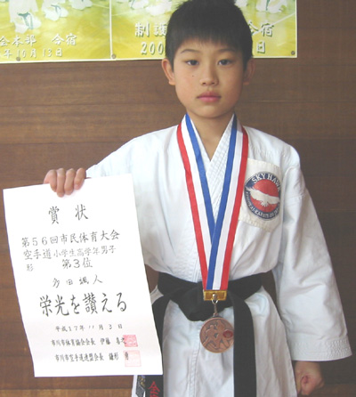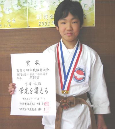 小学生中学年男子組手の部で敢闘賞の中澤佳祐選手!!
