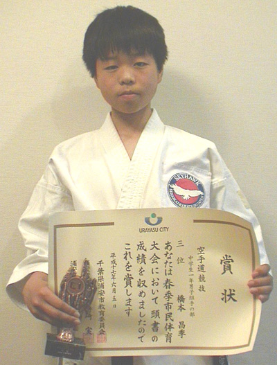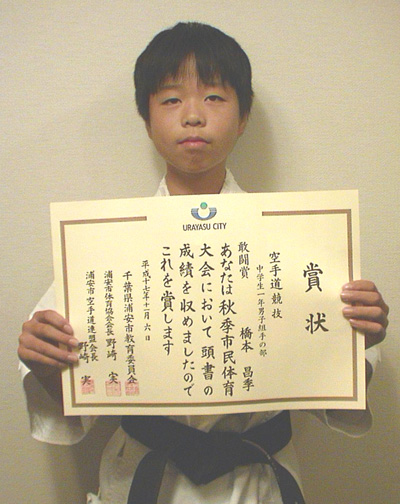 中学生1年男子組手の部で敢闘賞の橋本昌季選手!!