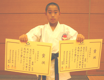 小学生5年男子組手の部敢闘賞、小学生有段形の部敢闘賞の桑野丈志選手!!
