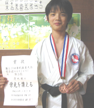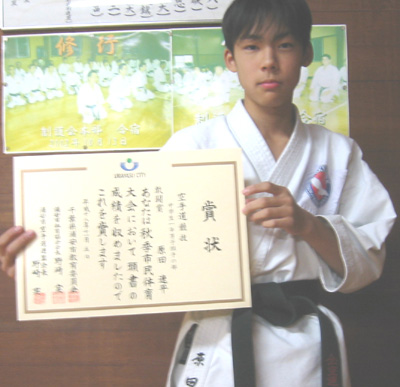 中学生男子有級形の部で敢闘賞の高田蒔夫選手!!