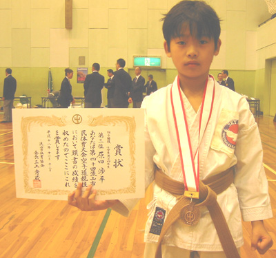 小学6年男子組手の部で敢闘賞の桑野丈志選手!!