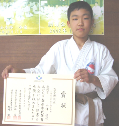 小学生高学年男子組手の部で敢闘賞の中澤佳祐選手!!