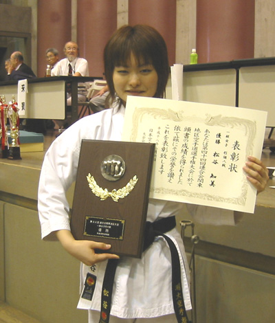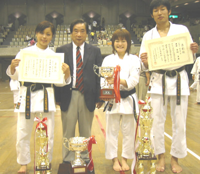 060806 東京武道館にて開催された大会で制護会大活躍!!成年男子組手の部で青柳隼康選手が優勝!成年女子形の部で松谷知美選手が優勝!成年女子組手の部で橋本由美子選手が準優勝!成年男子組手の部で優秀選手に選ばれた安田昇司選手と大活躍でした。