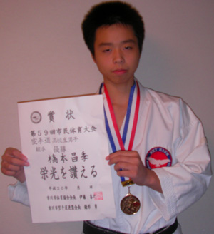 高校生男子組手の部で優勝の橋本昌季選手!!
