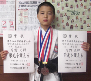 小学生4年男子組手の部で第3位の今野元輝選手!!