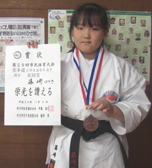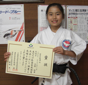 小学生高学年女子組手の部で敢闘賞の藤崎はづき選手!!