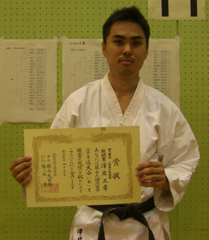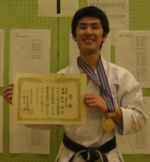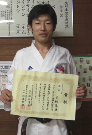 一般男子有級組手の部、形の部とも優勝した志村 哲選手!!