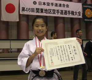 小学生高学年女子組手の部で第3位、形の部も敢闘賞の今野玲華選手!!