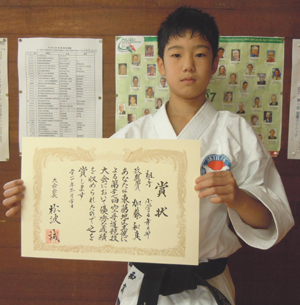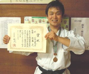 2010/1121/流山市総合体育館にて開催されました平成22年度第44回秋季空手道大会に於いて一般男子有段組手の部で安田昇司選手が優勝、一般男子有段形の部で佐藤 亮選手が優勝、一般男子有級形の部で加藤英央選手が準優勝、小学生6年男子組手の部で今野元輝選手が敢闘賞、小学生5年男子組手の部でか橋本尚弥選手が敢闘賞、大活躍でした。