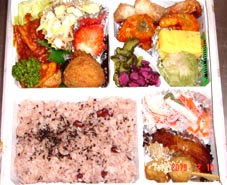 ある日のお重弁当です。 800円(税込840円)より ご予算にあわせてお作り致します 内容はお客様のご希望や性別、年齢、 又宗教上の制約等を 充分お聞きしてからお作りします。 また、お祝い事にお赤飯のお弁当も お作りできます