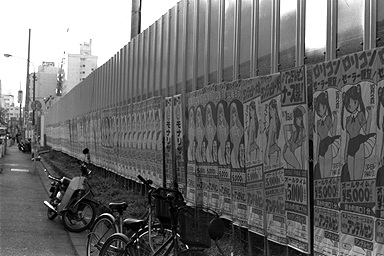 組写真「この町で僕は育った」十枚目です。これは九枚目の反対側に当たる場所で、よくこれだけ立てたなと思うほど、ずらっと看板が並んでいます。画面のほとんどを看板で埋めることによって、その存在感を強調してみました。
