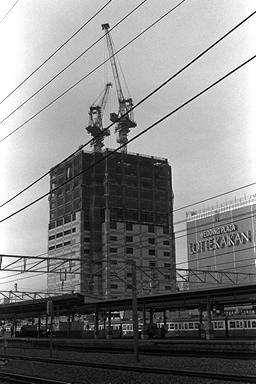 組写真「この町で僕は育った」十四枚目です。建築中の高層ビルを、縦構図で撮影して高さを強調し、変わり行く町並みの一角を撮影しました。現在、この町の発展はすさまじく、日々様相を変えつつあります。