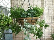 雨が降るたび株が大きくなります。ハンギングバスケットが楽しいです。