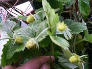 普通のイチゴより葉も実も小さく、立ち上がった茎に
