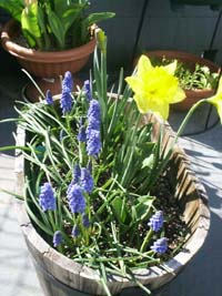 また、ムスカリだけの鉢植えにしても可憐なものです。水はけさえ良ければ、