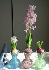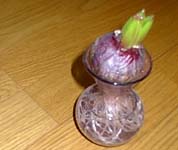 球根がほんの少し芽を出してきたら、取り出して暖かい家の中に移します。