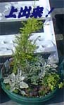 「シロタエギク」と「ヘデラ」「ゴールドクレスト」の寄せ植え。 |