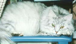 | 「ぽろ」のかわりにうちへやってきた猫。現在もわが家に生息中。アメリカでチャンピオンをとった猫だけに、 りりしいやつですが、ゲージで育てられたためおとなしい猫です。雑誌にも写真が載ったそうです。 「うり」はもともとのつがい猫として沢山の子供を作ってきた「きゃろっと」と一緒にこの家にきました。 するとそこには2匹の若い♀猫が!おとなしい性格ですが子ずくりは「野獣」のようで、同じ時期に 3匹を妊娠させてしまいました。彼にはこの家がハーレムだったのでしょう。 |