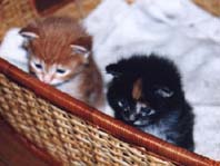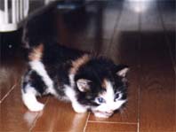| 「とまと」が産まれた時期は、ちょうど「みゅー」の出産期でもあったので、兄弟が皆死んでしまっても 遊び相手には不自由せず、明るく楽しく育ちました。大きくなる頃には「みゅー」とその子供はみーんな もらわれていき、なぜかある日お父さんの「ぽろ」も血迷ってベランダより失踪してしまいました。 ということで、残されたお母さん猫「たかな」が唯一の遊び仲間となりました。 しかし、そんな時代はすぐに去り、2匹の夫婦猫がきました。「うり」と「きゃろっと」です。 成長した「とまと」は、母親の「たかな」に継いで、「うり」の第3婦人として子供を産みました。 しかし、まだ幼かったので、赤ちゃんは育ちませんでした。 |