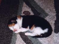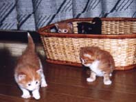 | 困ったことに、「たかな」は子供の面倒を見ず「うり」を追いかけてばかりいました。「ぽろ」は子供の面倒見が 良かったのですが、「うり」は全く無関心だったので、子猫は1匹しか育ちませんでした。 うーん、動物にも子育ての悩みがあるのです。 もどる |