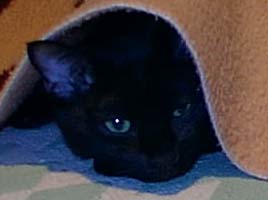 僕はとても寒がりなんだ。 「うり」みたいな毛があると温かいんだけど。 ほっとカーペットの上の毛布の中 これが一番お気に入り。 |