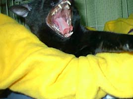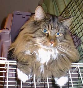 | ごみ箱とられちゃいました。 しょうがないから いつものようにゲージで寝るか・・・。 でも明るくておちつかないなぁ。 |