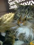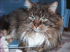 毛布の外でも平気そうに見えるけど 実はストーブの前。 実はストーブの奴に恋してるんだけど スリスリしすぎてよく尻尾なんかが こげちゃうんだ。 |