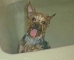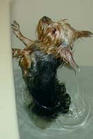 | ぼくの入浴を初公開だ。 実はおふろ苦手です。 はやくお風呂からでたいよぉ。 タオルドライの図 |