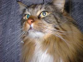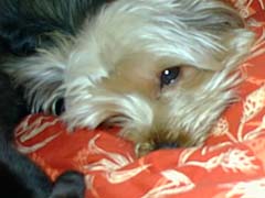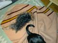 | でも、カメラを向けられると、どうしても 目が半分開いてしまう。 ああ、でも眠い。 お願い、カメラを向けないで・・。 |