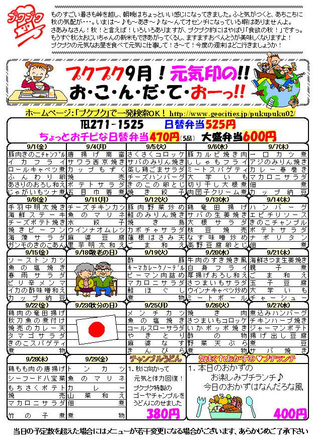 9月のお楽しみメニューは