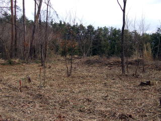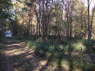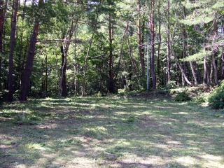 舗装町道から130mほど北に入った土地。この土地の北側は北に傾斜した土地で、その向こうは田んぼ。周囲から隔絶されたような環境で、プライベートキャンプ場用地として最適。