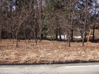 現地は広葉樹や笹竹が生い茂っている。この敷地を囲む周辺土地には建物は建っていない。