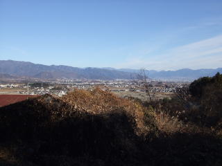 八ヶ岳から茅ヶ岳一帯麓の景色や韮崎市街の街並み、田園風景を眼下に望む。
